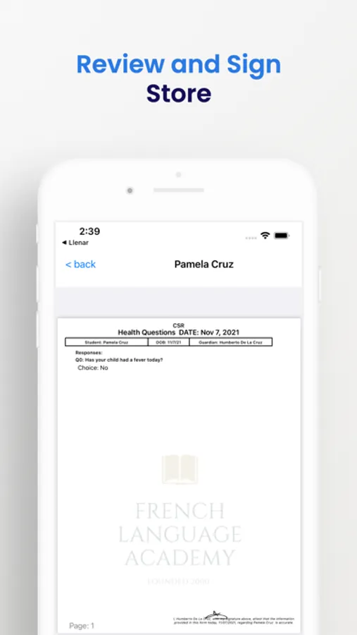 Create forms and distribute to parents via QR codes to complete and sign on their phones. Submitted forms will appear on your account to review and sign. You can also put your tablet on form filling mode for parents that don't have the app!