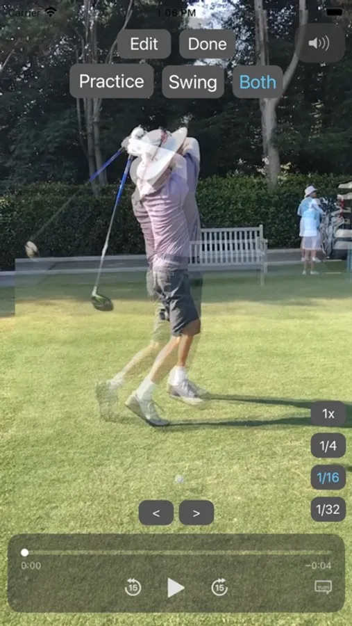 Practice/Swing makes it easy to compare your practice and real swings side-by-side or overlaid, in normal or slow motion. It shows you the differences between your practice and real swings and trains you to swing at the ball the same way you practiced — that is, to "hit your practice swing." If you're like most of us, you'll see immediate improvements — including better tempo, more solid contact, and greater confidence overall.