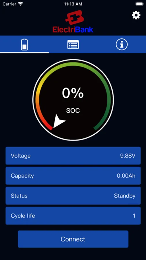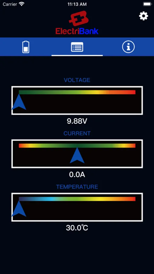 The Apps main feature is to monitor the details of the ElectriBank battery. The iOS App via Bluetooth connectivity will monitor the following information from the battery.