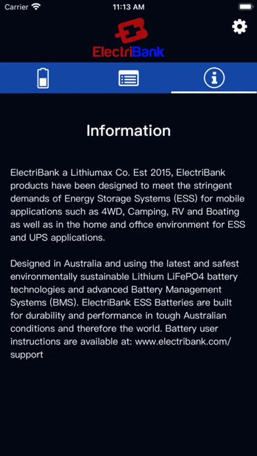 This app is only applicable to ElectriBank Lithium batteries and will not work with any other brand/type of Bluetooth battery monitoring system, nor will any other branded app work with the ElectriBank lithium battery.