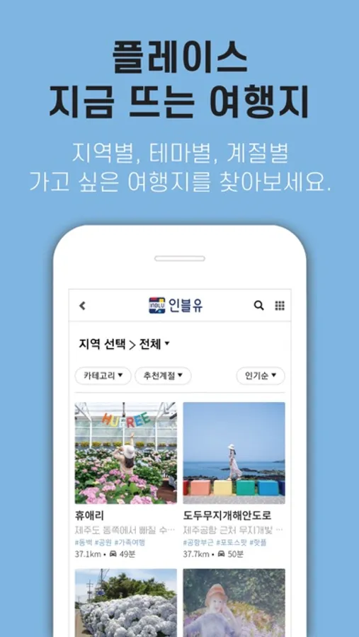 지역별, 카테고리별, 계절별로 플레이스들을 검색하고 나에게 맞는 여행지를 추천받으세요!