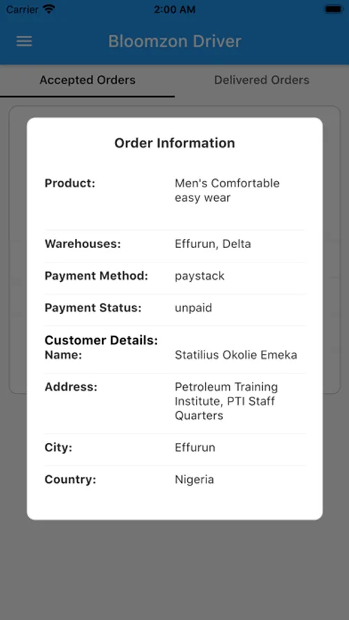 Deliver orders for Bloomzon shopping store to customers and get paid in cash