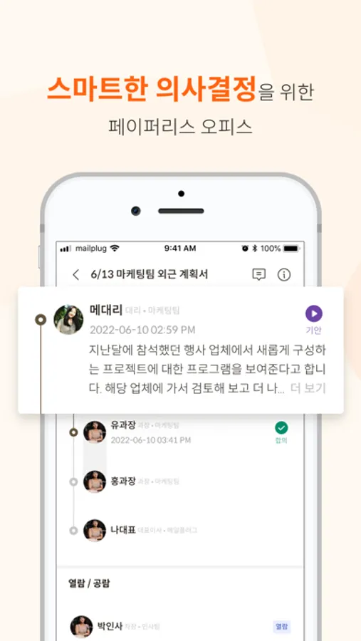 언제 어디서나 결재 진행 상황을 확인하고 체계적인 의사 결정을 해보세요.