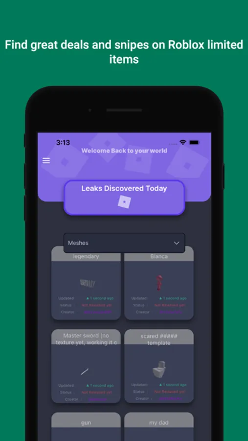 Find great deals and snipes on Roblox limited items with our Deals Page. Our deal scanner detects low-priced limiteds so you can try buying them before someone else does!