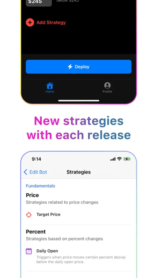 Hest will notify you when your strategies are met. Currently, Hest supports the following: