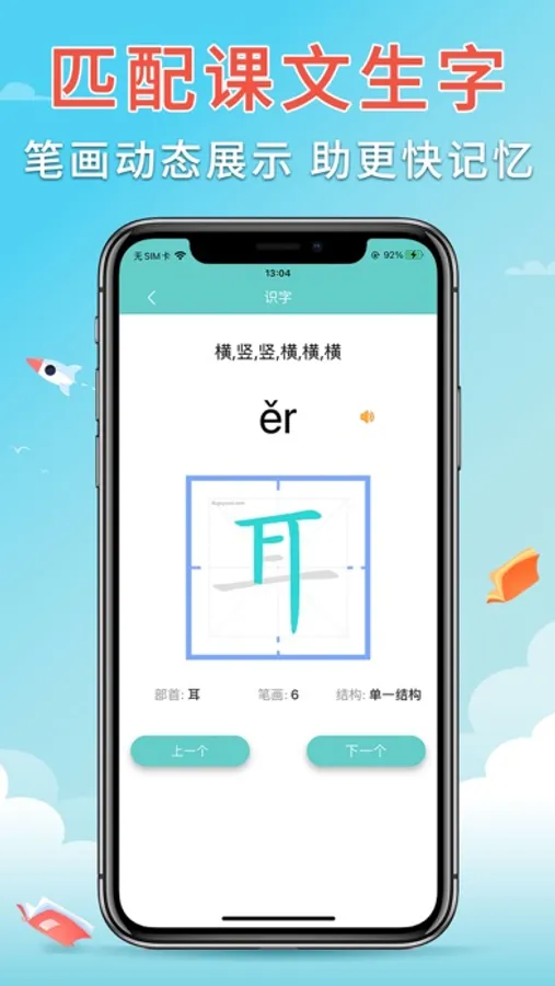【识字】:系统学习汉字,包含笔顺、发音、部首、笔画、结构等多个内容。