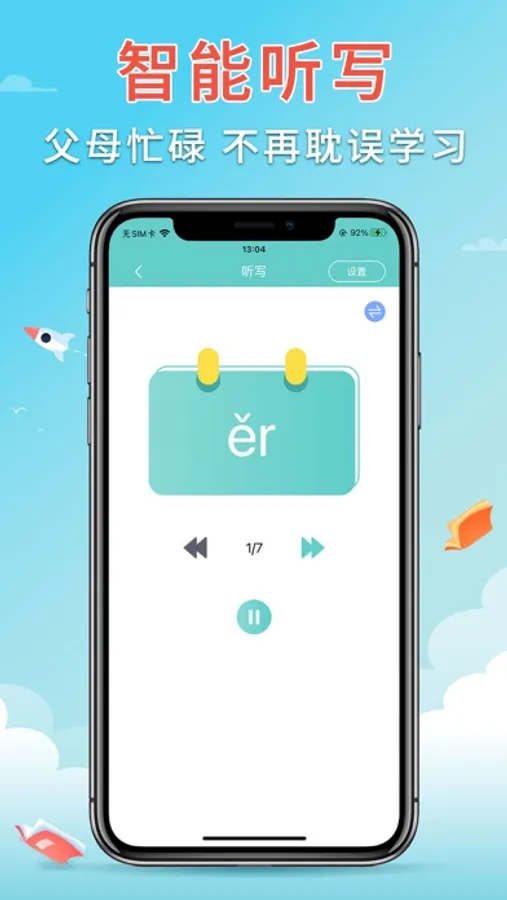 【听写】:男老师、女老师、男学生、女学生等多种主播发音供你选择,写字时间不够用?设置间隔时长来解决!循环朗读,词语联想!宝宝听写练字不用愁。