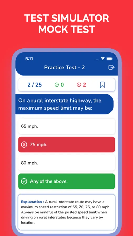 Another important feature of the app is its practice questions. These questions are designed to help you prepare for the real DMV test by simulating the types of questions you'll encounter on the exam. This app includes questions based on official Utah DMV state manual. With practice questions covering everything from road signs to traffic laws, you can be confident that you're fully prepared for your license test.