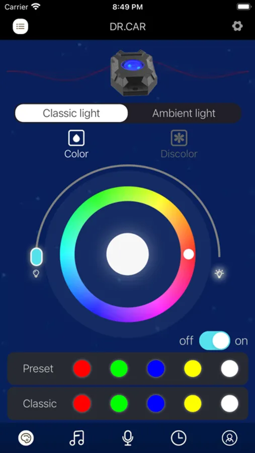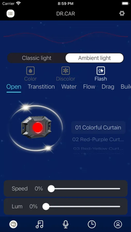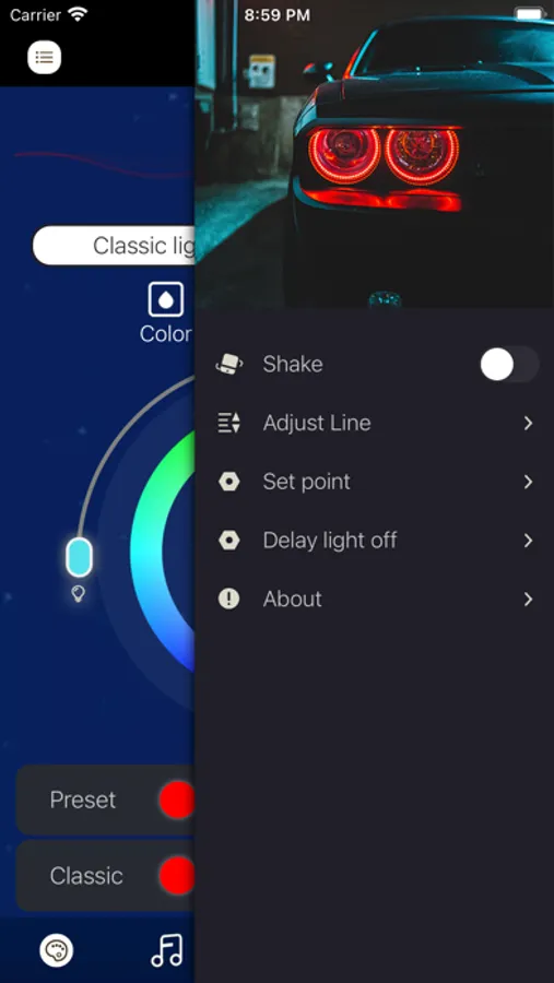 An application that can connect and control multiple rock light devices at the same time and can set simple parameters of the device. It can set the rock lights' speed, light color, light brightness, etc... Additional has the function of mobile phone pickup.