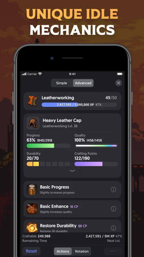 - Advanced mechanics for idle veterans, and simple mode for casual players.