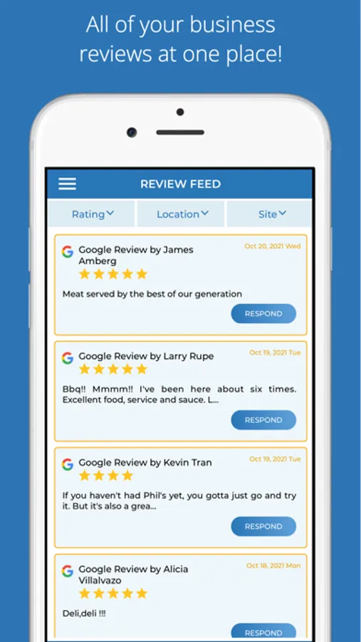 RespondNow provides local businesses the ability to take control of their online reviews. This includes helping them generate more reviews on review sites that impact their business. RespondNow alerts you when reviews are posted about your business and allows you to respond to your reviews from one central dashboard. If you do not have time to respond to your reviews, RespondNow can do that too!