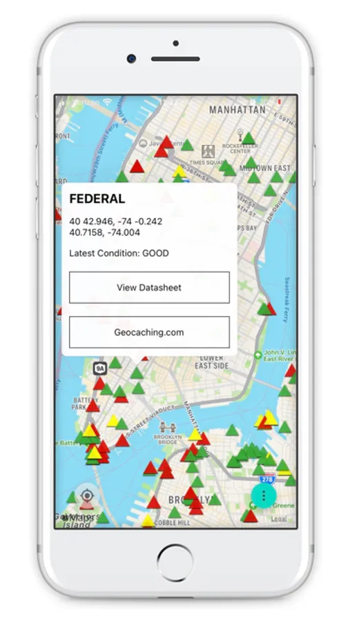 Hunt for National Geodetic Survey benchmarks. View survey marks on a satellite, road, or hybrid map. Easily view NGS datasheets and Geocaching.com pages. Survey marks are from the United States NGS database only. Other survey marks not in the NGS database will not be displayed.