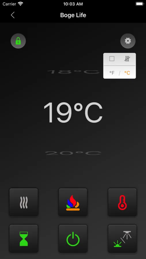 Boge Life is an intelligent electric fireplace control app. It is equipped with function controls of On/Off, Flame color, Flame brightness, Ember-bed color, Ember-bed Brightness, Heating, Timer, Temperature, Flame Speed and so on.