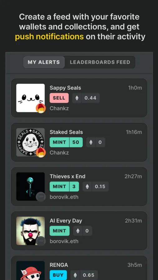 Real-Time NFT Alerts: Get instant notifications for the best new projects, highly anticipated reveals, and influential moves by whales and influencers. Stay ahead of the curve and catch trends before they go mainstream.