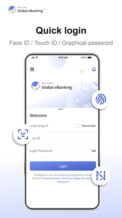 Global eBanking+ uses “Cookies” to improve user experience. You agree to the privacy and cookie policy of the bank when you install and use this application. Please refer to our policy for more information: https://bank.sinopac.com/sinopacBT/footer/privacy-statement.html