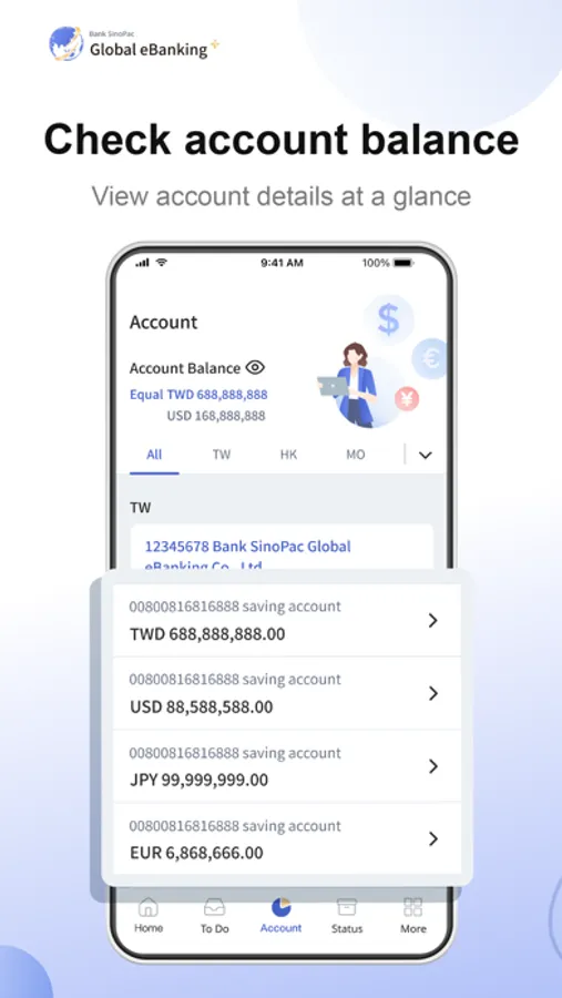 Bank Sinopac Global eBanking+, Your Best Mobile Financial Assistant.
