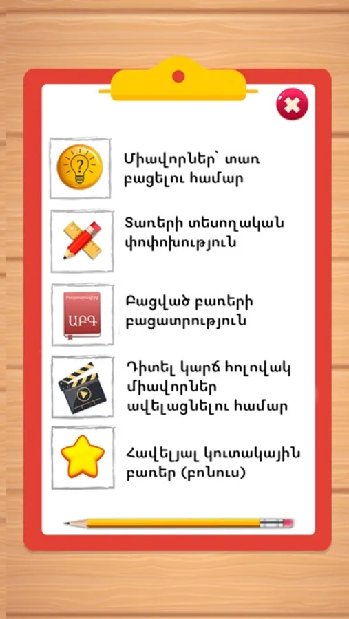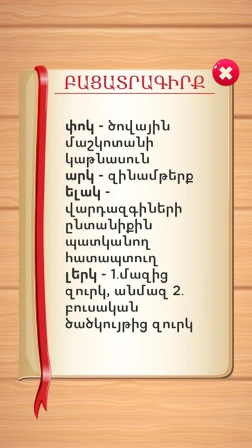 "Baraxax"- is an interesting intellectual game, which broadens horizons enriches Armenian vocabulary and trains the brain. If you find new words that are not included, either on the board nor in the cumulative words section, you can send them to digibrain.pro@gmail.com, indicating at which stage you found it in the word, we will be happy to include it in the game. Thank you for downloading and playing the game, have fun.