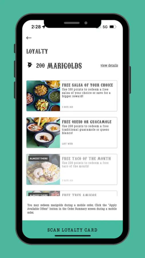 The Barrio app lets you order your tacos for delivery or to-go, yo! For every order you place, you'll earn Marigolds toward your next orders. Enjoy rewards as your Marigolds multiply!