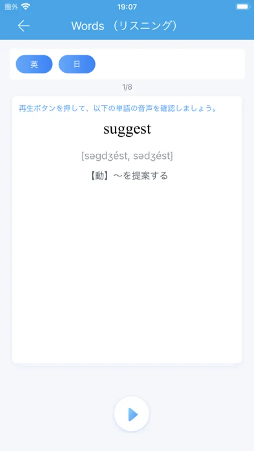 ・表示される言語を切り替えると,日本語訳を見ながら瞬時に英文に言い換える練習も可能です!