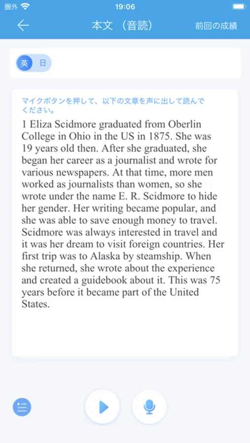 ・自分で読んだ音声を,「発音」「流暢さ」「完成度」の3つの観点でAIが自動採点!