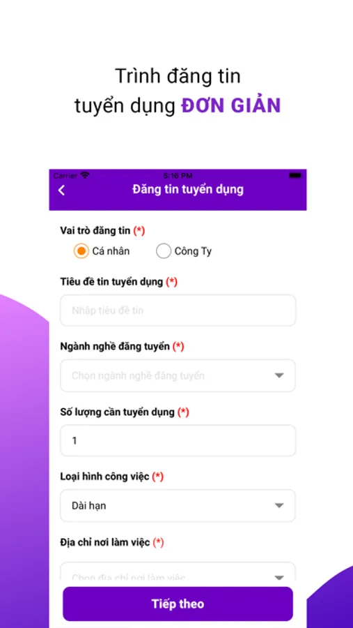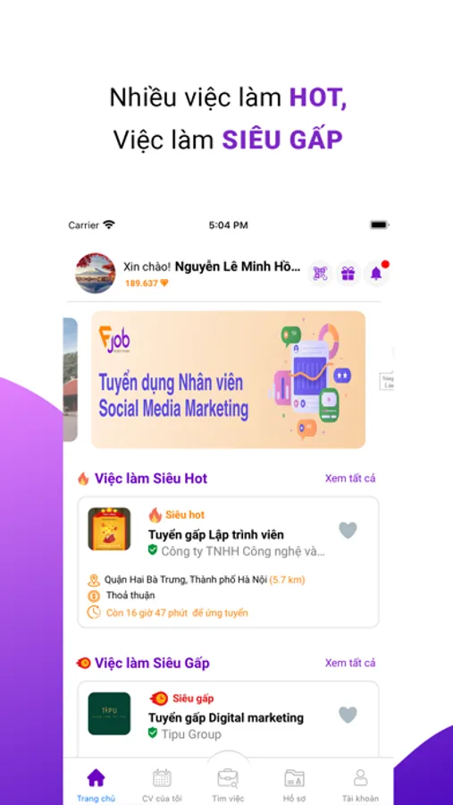 Fjob là nền tảng tìm việc làm dành cho thế hệ trẻ năng động, sáng tạo, khát khao khẳng định năng lực, và luôn chủ động tìm cơ hội cho bản thân. App tìm việc làm Fjob thực sự phù hợp cho những người luôn hừng hực khí thế cống hiến cho công việc như lứa tuổi thanh niên sôi nổi.