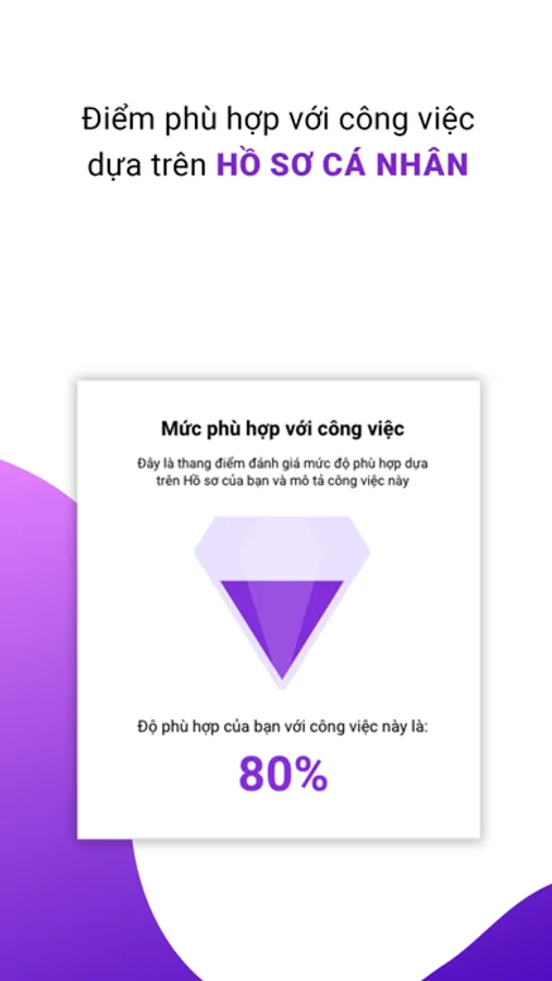 Fjob cũng lượng hóa mức độ phù hợp của công việc cần tìm người đối với hồ sơ của người tìm việc làm bằng tỉ lệ phần trăm. Tính năng này giúp ứng viên và nhà tuyển dụng nhanh chóng chọn lọc đối tác phù hợp. Bạn cũng có thể học được các mẹo ứng tuyển thành công, các đánh giá về tiềm năng nghề nghiệp với những chia sẻ ở cuối trang tại ứng dụng Fjob.