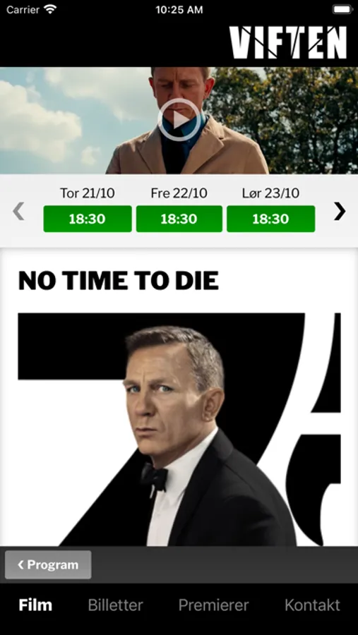Med denne app har du mulighed for at gennemse programmet for Viften samt se yderligere filminformationer som trailer, censur, medvirkende skuespillere, varighed m.m.