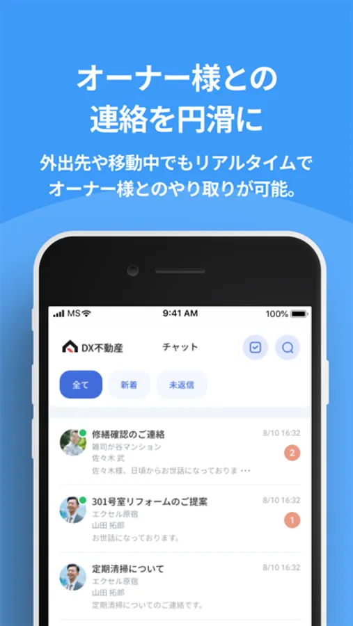すぐにコミュニケーションをとることができることにより、オーナー様と管理会社様のコミュニケーションをより円滑にすることができます。