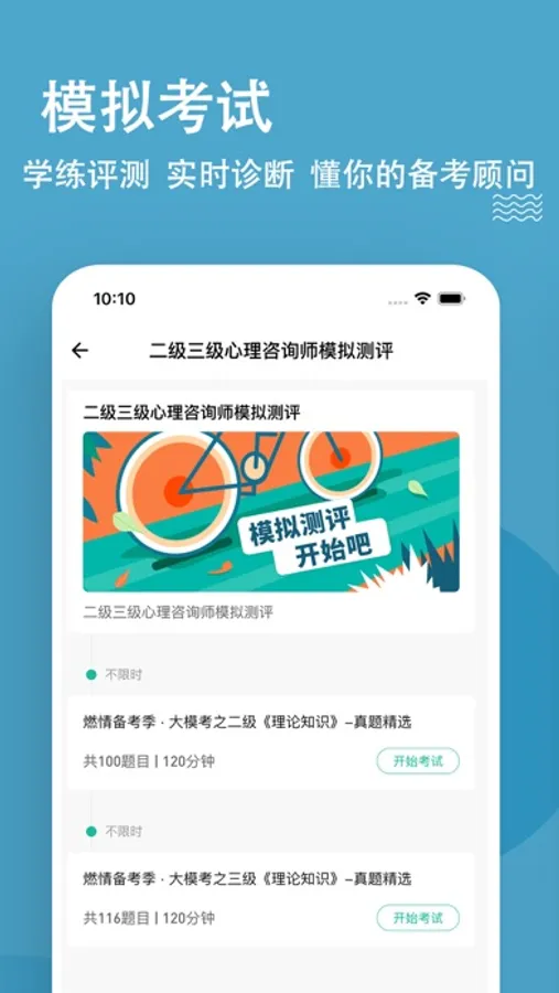 心理咨询师考试题库是考生专用的实现科目练习和模拟考试的手机端APP软件,集智能辅导、题目解析、全真题库和实时考讯于一身,涵盖该考试热点、难点和常考点,消防考试题库章节练习,包括题库中的试题全真模拟真实的考试,是各位考生学习备考的好帮手。