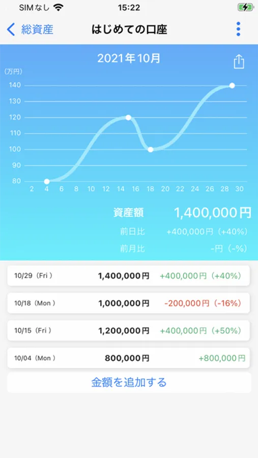 ・各口座の金額の記録、削除
