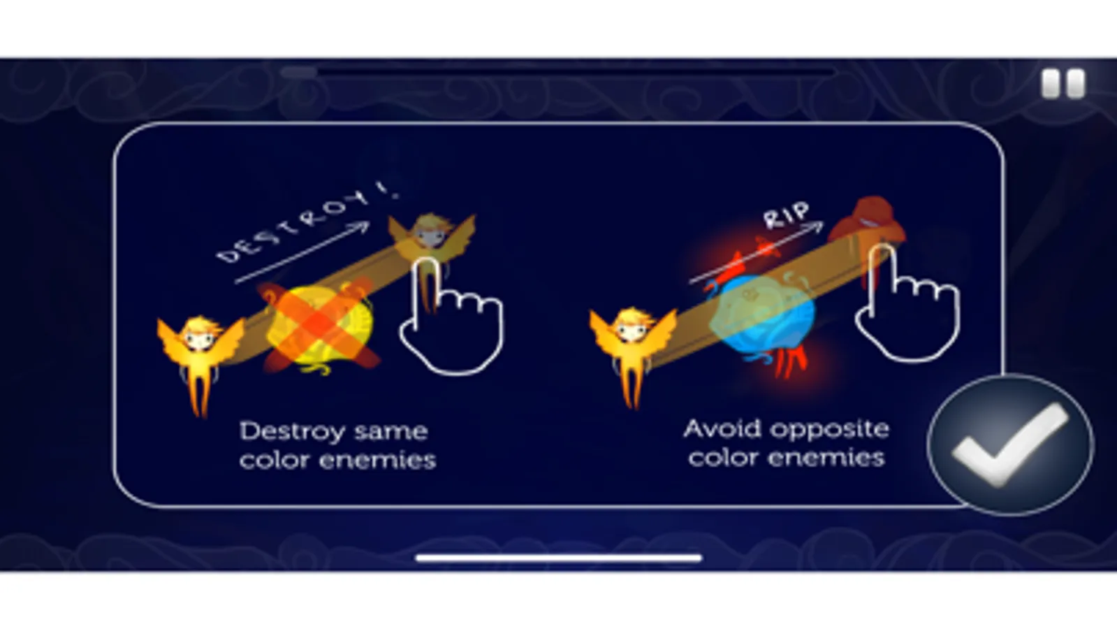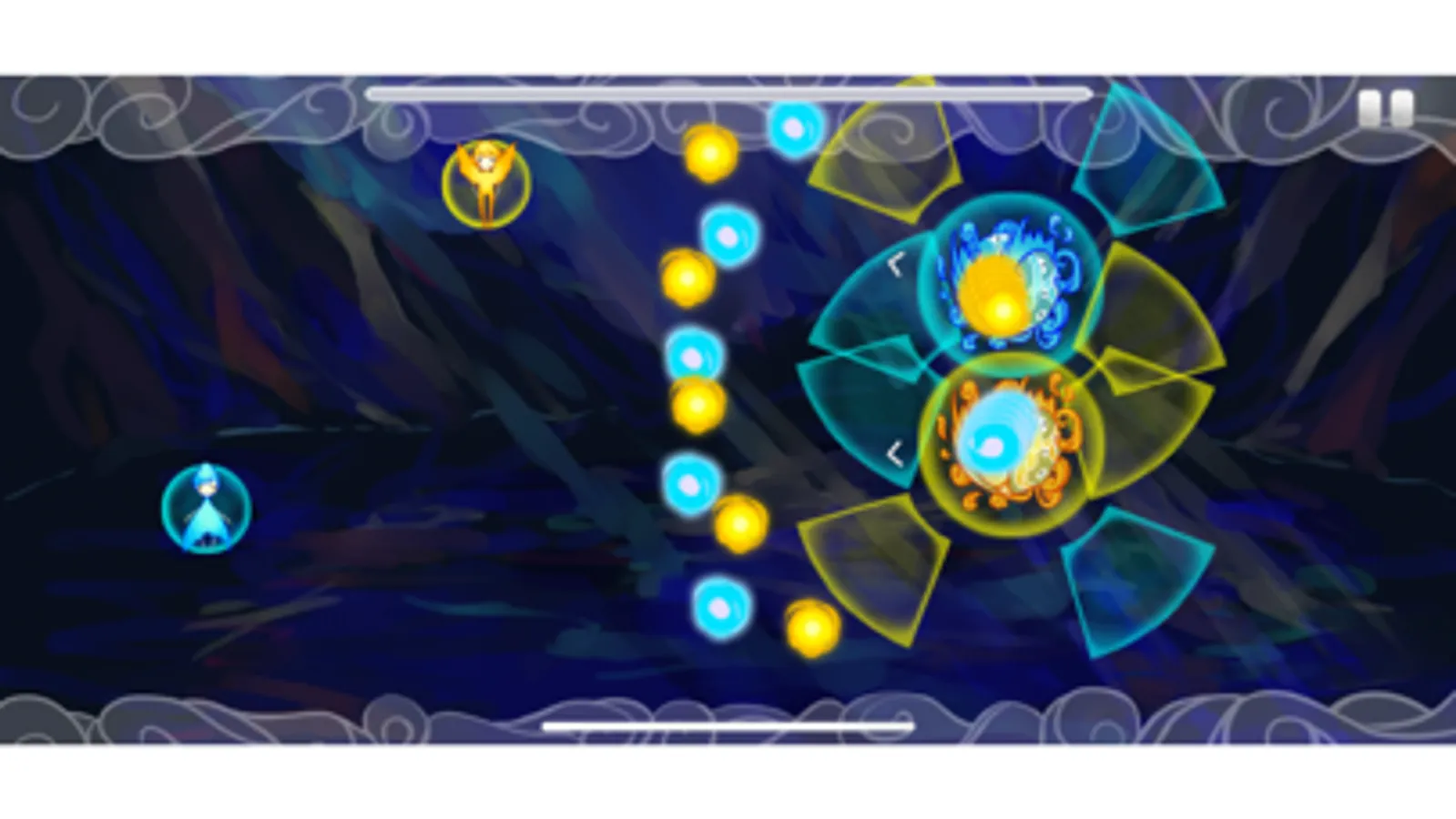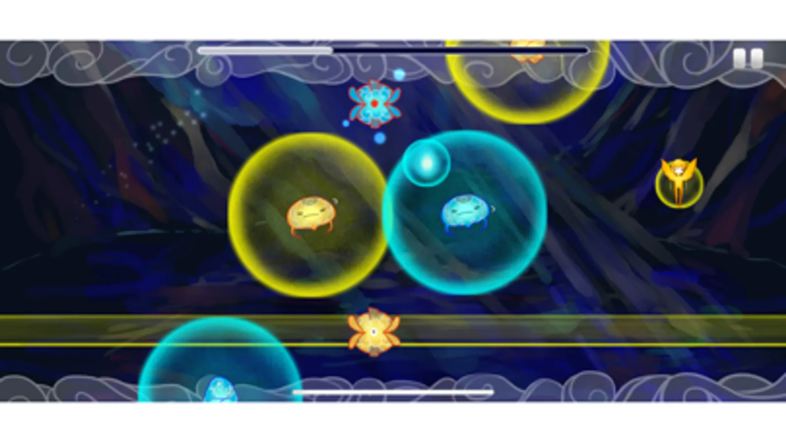 Within a dreamy landscape of blue and yellow help our duet survive by swiping through waves of magical spirits.