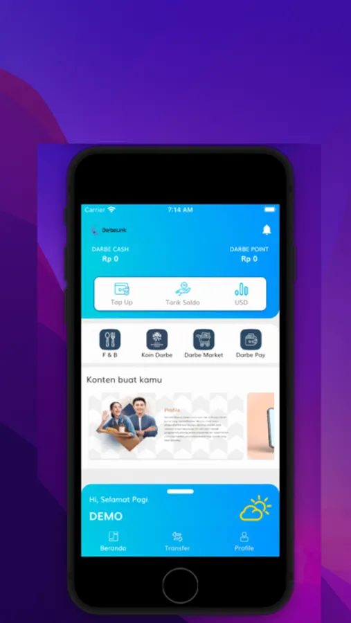 Aplikasi darbelink sebagai gateway dan pembayaran untuk ekosistem darbe group. Aplikasi dalam versi awal memungkinkan untuk melakukan pembayaran diseluruh outlet darbe cafe.