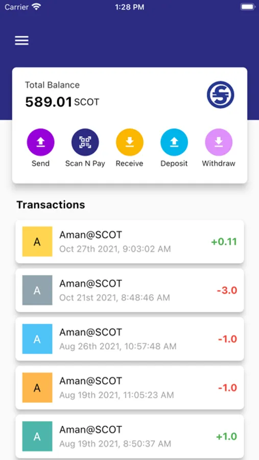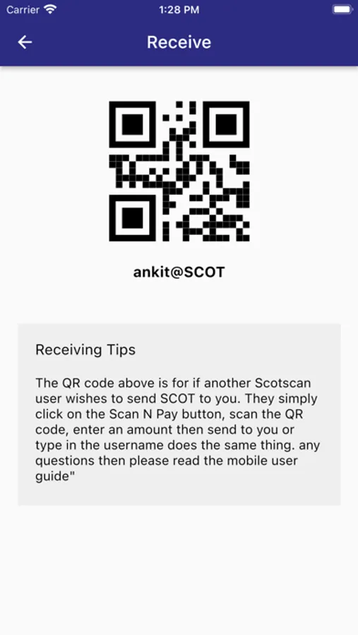 Scan N Pay, where you can scan another Scotscan users' QR code from the “receive” button.