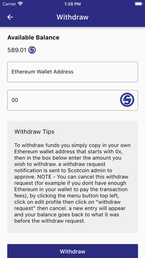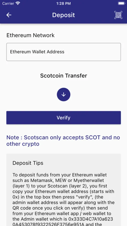 The Deposit function allows you to receive Scotcoin into your Scotscan account from your Ethereum wallet and finally “withdraw” allows you to withdraw Scotcoin back into your Scotscan account into your Ethereum wallet and on to exchanges. Scotcoin is hopefully going to be added to exchanges in the last quarter of 2022.