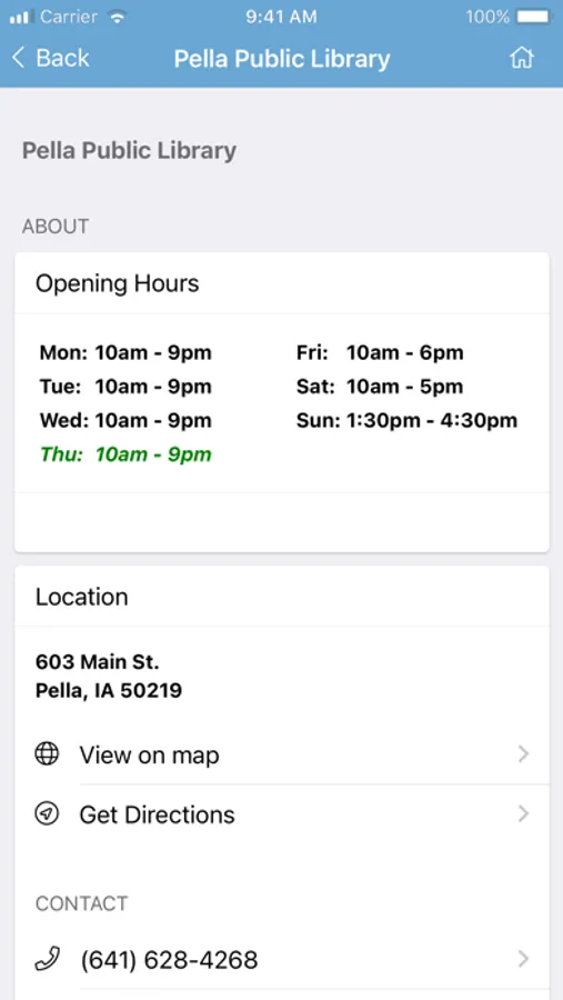 Take the Pella Public Library with you wherever you go! Manage your account, search the catalog, place holds, and renew items, all from your favorite Apple mobile device.