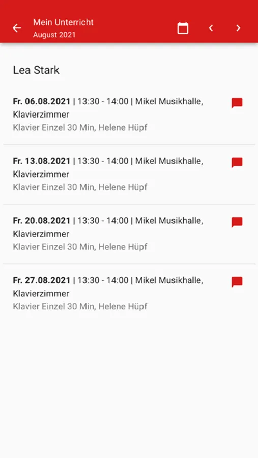 Alle Funktionen zum Austausch von Nachrichten zwischen Lehrkräften, Eltern, Schülerinnen und Schülern sowie der Musikschule setzen keinerlei Kontaktinformationen voraus. Die Übermittlung von Nachrichten erfolgt über eine App-interne ID. Zum Chat und Nachrichtenaustausch sind keine E-Mail-Adressen oder Handynummern erforderlich!