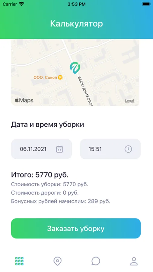 ⁃ Простой и понятный Калькулятор с автоматическим расчётом стоимости уборки.