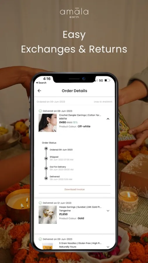 The Amala Earth app is made with the latest technology and can recommend options that align with your interests. If you want to return or exchange a delivered product, the app can navigate you through the process in a hassle-free manner.