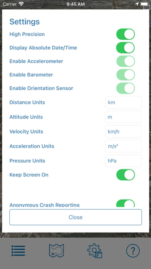 - Customize Distance, Speed, Acceleration, Altitude and Pressure units