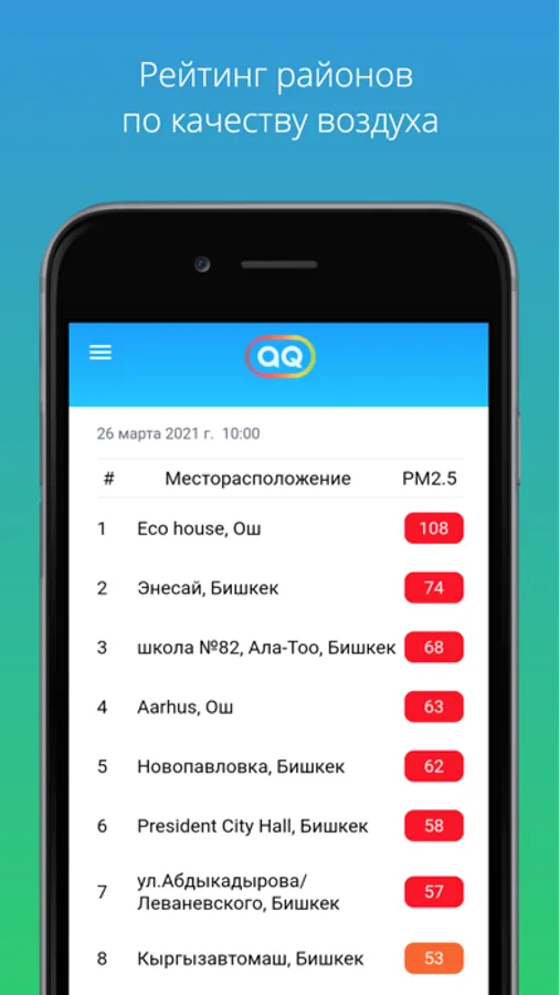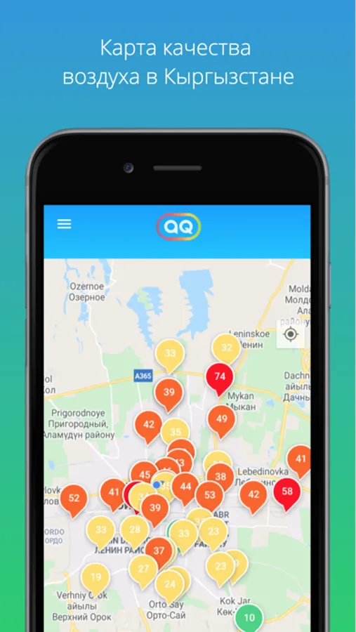 Мобильное приложение AQ.kg разработано ОО “MoveGreen (МувГрин)” для информирования жителей Кыргызстана о качестве воздуха в реальном времени.