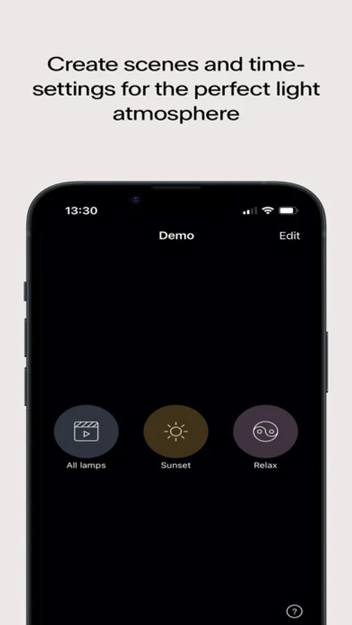 Use the Grau app to program and save light scenarios for every mood and situation. Set the light right for working, meeting, dining or downtime and save the settings as a scene. Then simply select the scene you need with one tap. Grau timer function lets you configure lamps and lighting scenes according to time, date, or sunrise / sunset.