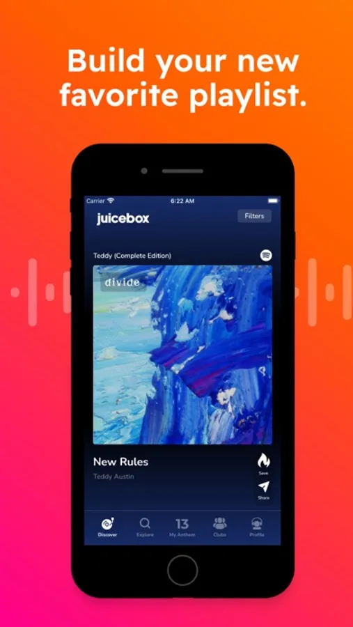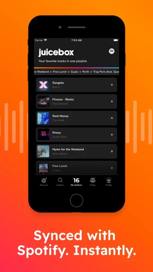 - Build your playlist! Automatically sent from Juicebox to Spotify, in milliseconds.