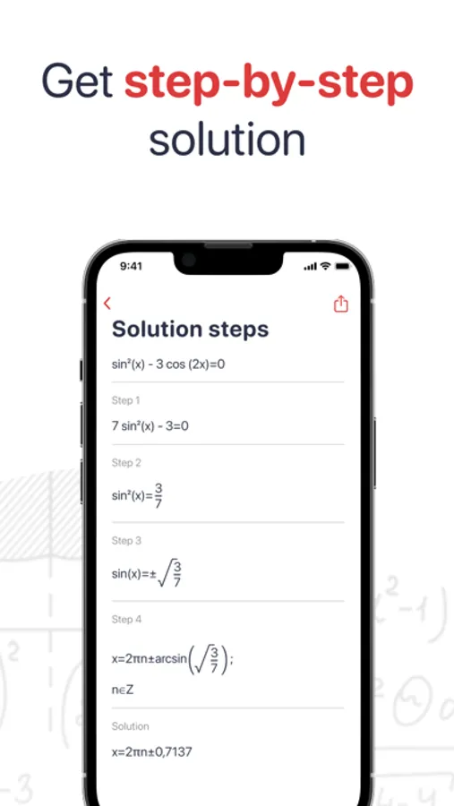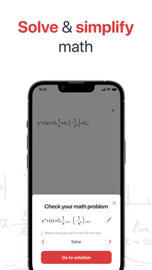 Need help with your math homeworks or class assignments? Stuck on a hard problem? Just snap a photo of any math problem, and Math problem solver will provide you with a clear step-by-step solution!