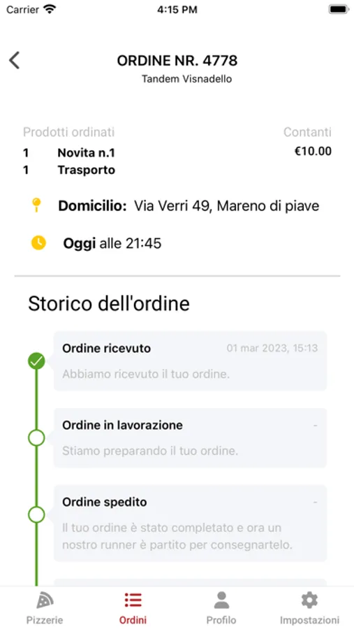 Monitorizza lo stato di avanzamento dell'ordine per una pizza consegnata in modo sempre puntuale.