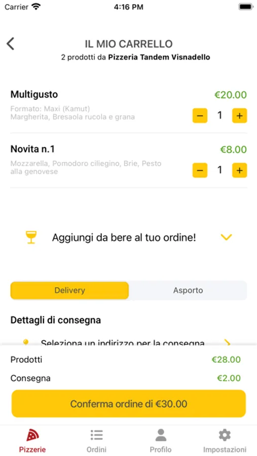 Il servizio a domicilio è disponibile ad un raggio di 3 km dalla pizzeria selezionata. Verificabile con il filtro pizzerie vicine.