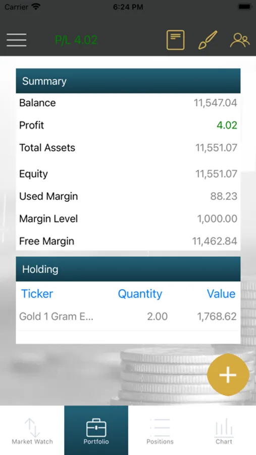 Allows for the trade of physical commodities/currencies and the delivery of the actual assets upon request. Processes are designed in a user-friendly format to ensure a pleasant and swift experience. A distinct feature of this account is that liquidation risk is non-existent.