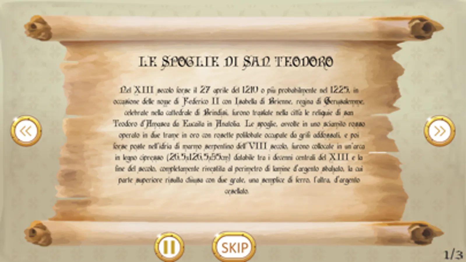Utilizza lo scanner AR dell'Applicazione per acquisire marker di realtà aumentata e visualizza le informazioni dell'Arca di San Teodoro presente nella chiesa di San Paolo a Brindisi.