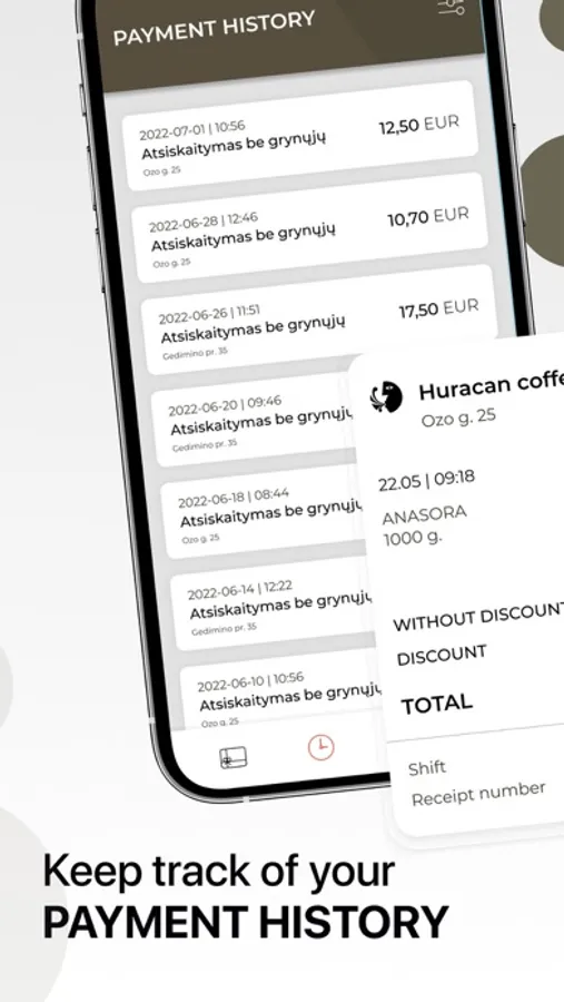You already have HURACÁN COFFEE loyalty card? Download this app, install it and register your loyalty card - all your points will be automatically transfered to the mobile app. IMPORTANT - once you transfer your points from physical card to the app, you will not be able to use your physicall card. Questions and suggestions - info@huracan.lt