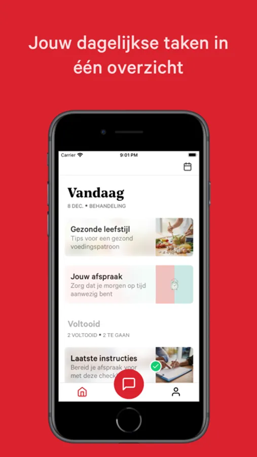 The Boerhaave app is there for you as a digital assistant during your treatment journey. By providing you with information, personally guiding and supporting you, you are always fully informed. We'll give you a heads up whenever there's something you need to do or know about your treatment.