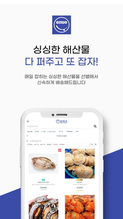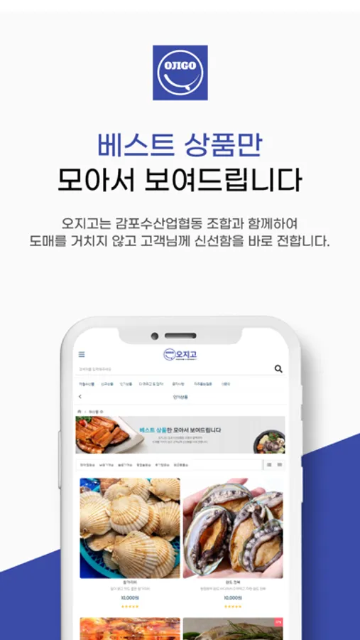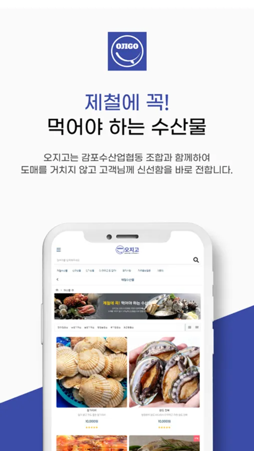 '오지고'는 감포수산업 협동조합과 함께하여 도매를 거치지 않고 고객님께 신선함을 바로 전하는 해산물 쇼핑몰입니다.